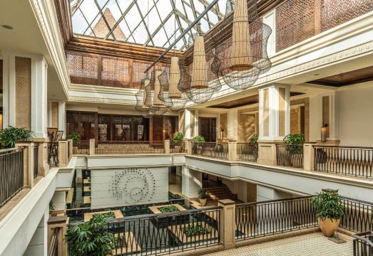 Set on 28 acres of lush tropical gardens, overlooking the Zuari river, Grand Hyatt Goa is a unique five star conference resort and spa located in northern Goa next to Bambolim beach. Inspired by the 17th century Indo-Portuguese architecture, this contemporary palace features 314 Grand Rooms, Suites and one Royal Villa. All accommodations enjoy private terraces or balconies.